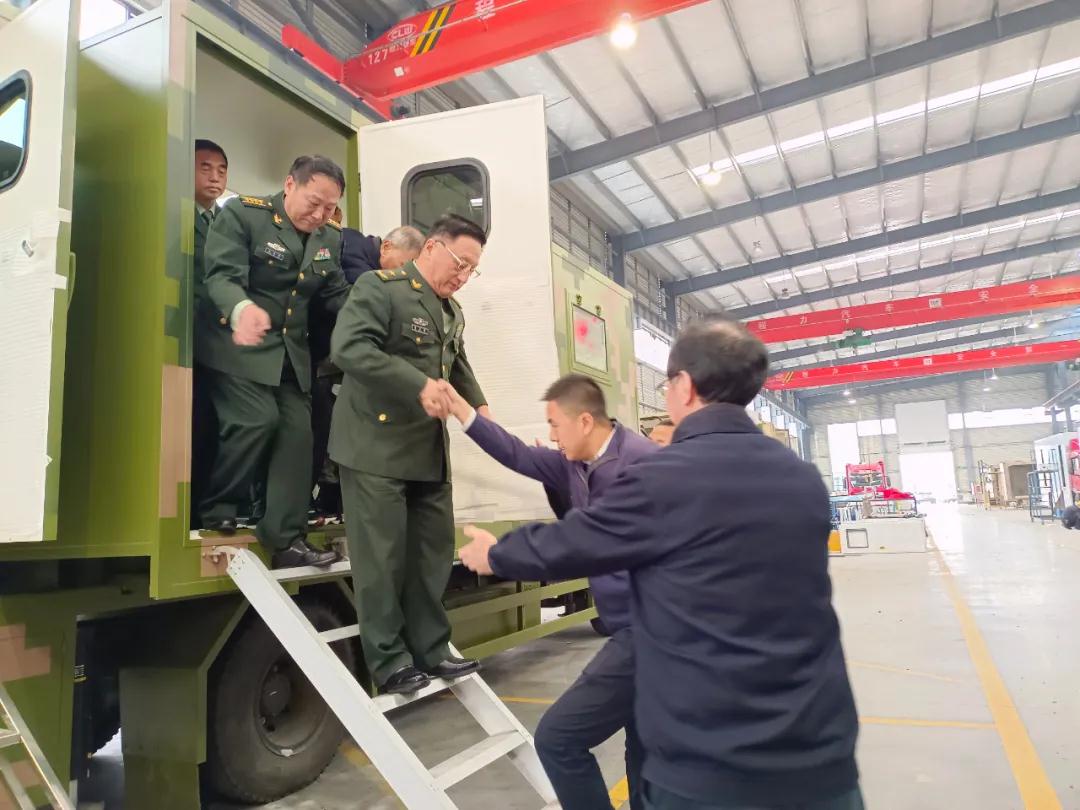 視察組參觀的第二站,來到了程力汽車集團應急保障車生產車間調研,對程力野外露營車、淋浴車、餐車、被服洗滌車、電源搶險車、排澇車等軍民兩用裝備的生產工藝與產能,表示出濃厚的興趣;當首長們了解到中國神舟十三返航英雄們,所用的地面后勤保障醫監醫保醫療專用車,也是程力公司所生產的情況后,大加贊許。